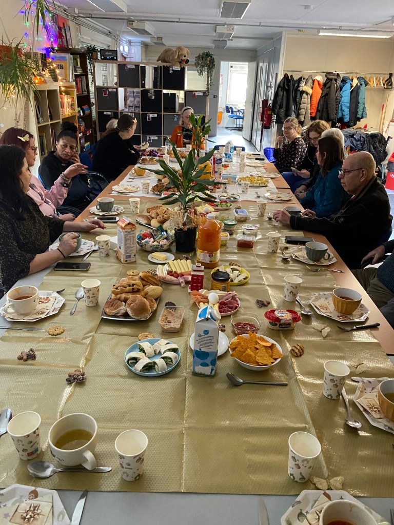 Op 23 december werd er een lunch georganiseerd door de groep mensen van Philadelhia voor het voltallige bestuur van onze vereniging. De tafel was mooi gedekt met allerlei heerlijke etenswaren, hapjes en drankjes waar we met z’n allen van hebben genoten. De kantine zag er mooi versierd uit.