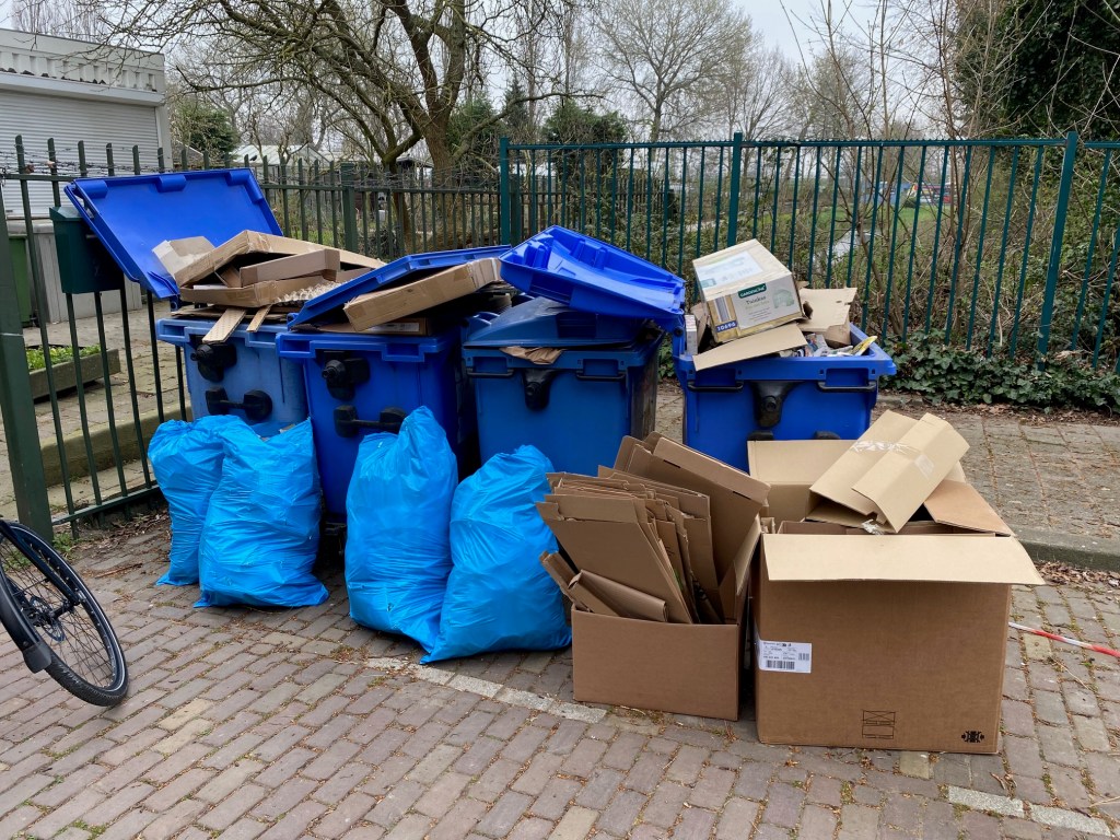 Zoals gemeld in onze mailing waren er praktische problemen met het ledigen van de karton/papier containers. Afspraken met Irado zijn gemaakt om ledigen van containers weer terug te brengen naar elke week op maandag als wij ons aan de container vulgraad van 75% houden.