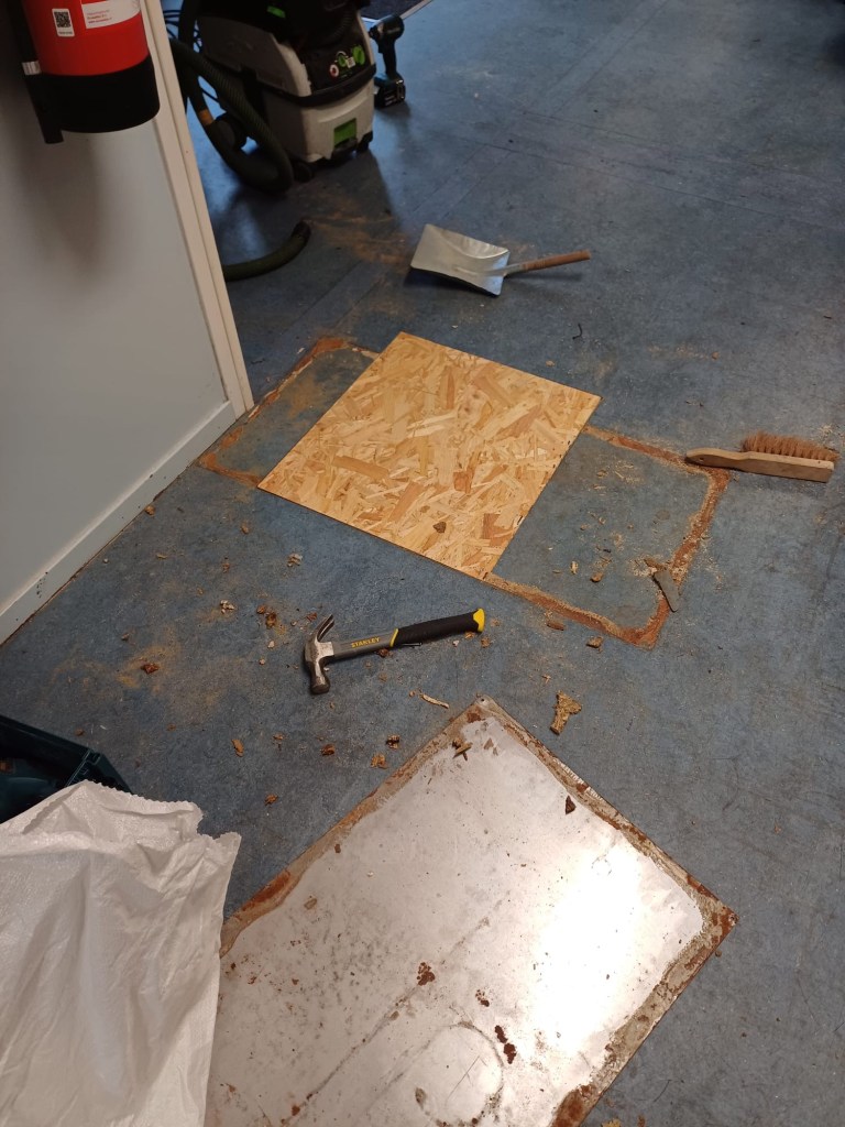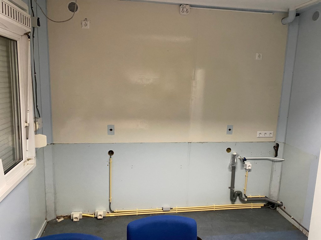 Onder begeleiding van onze technische leden heeft een aannemer een luik in de kantine aangebracht