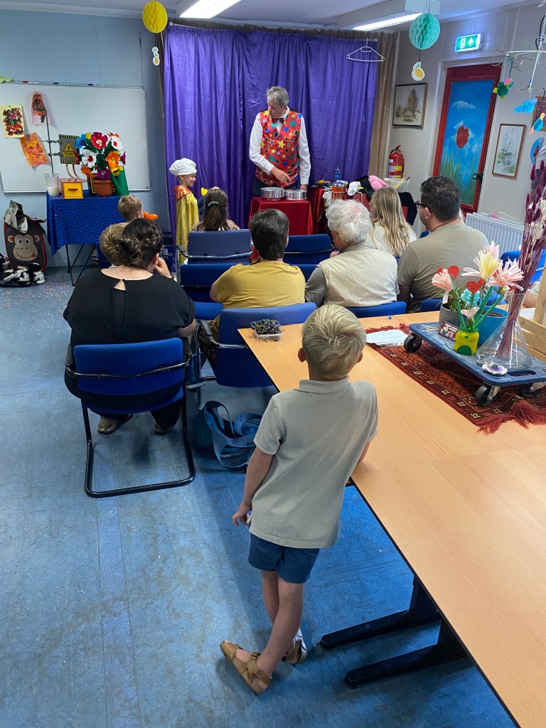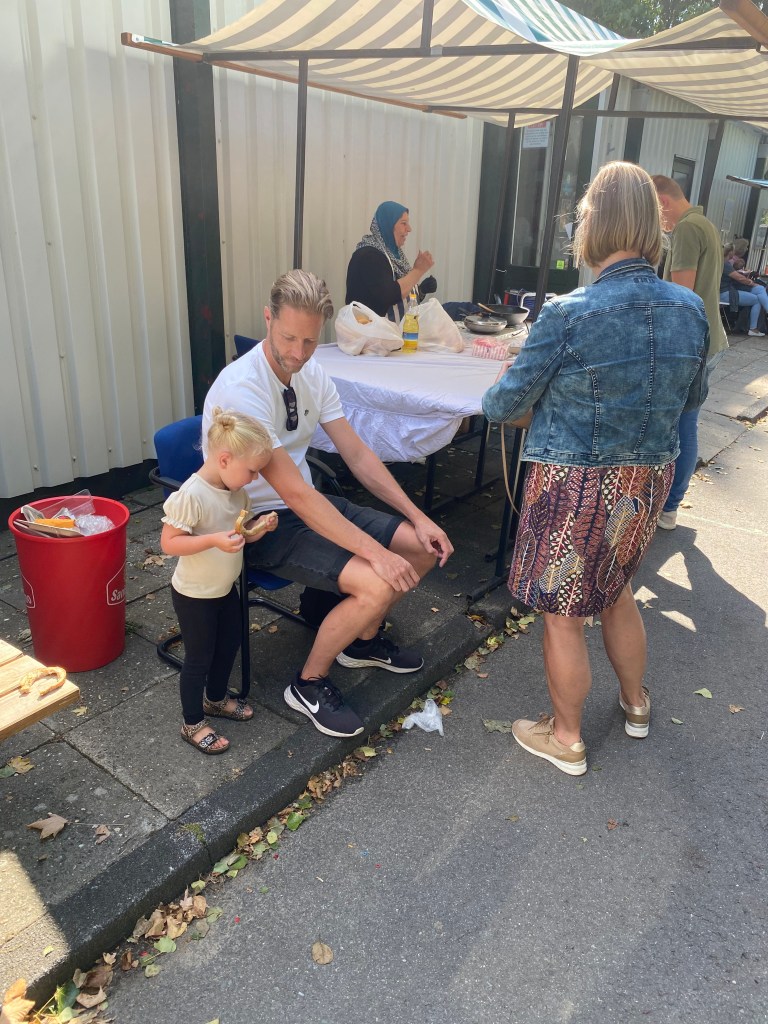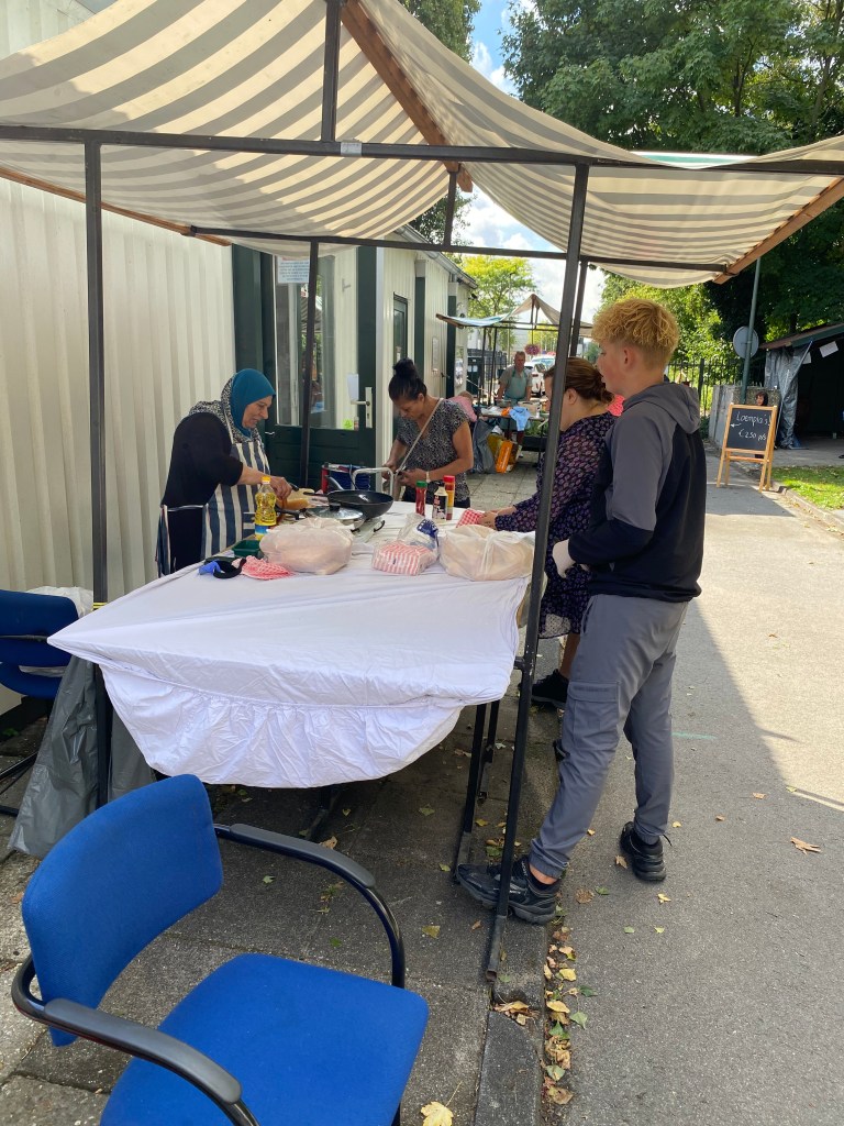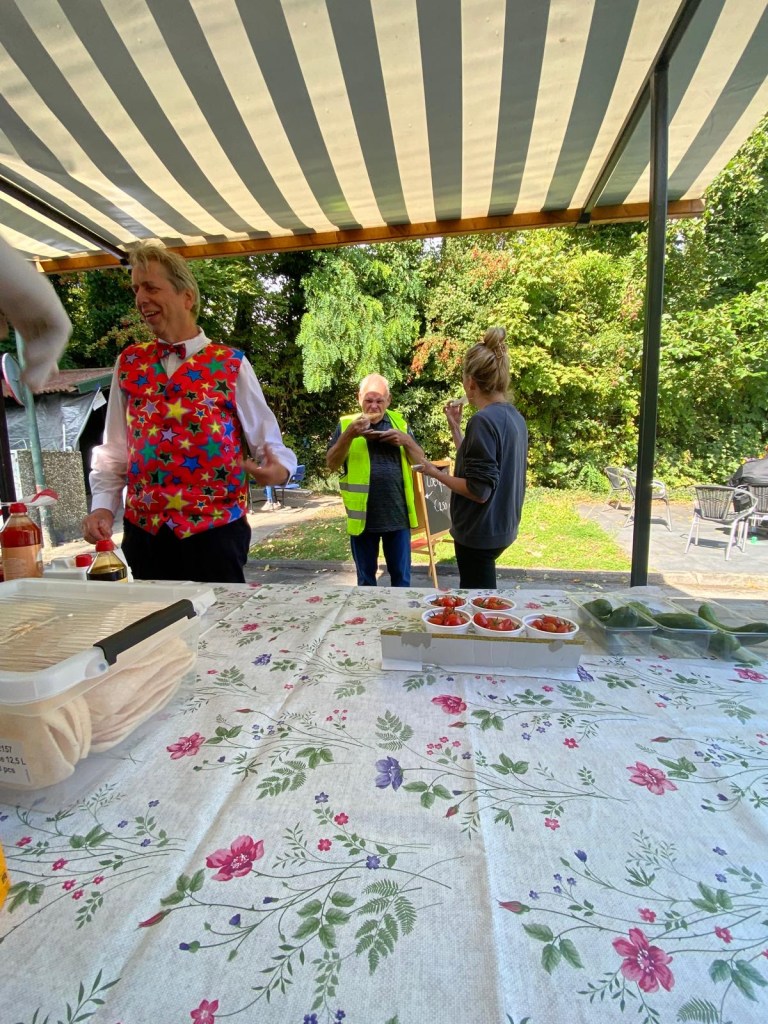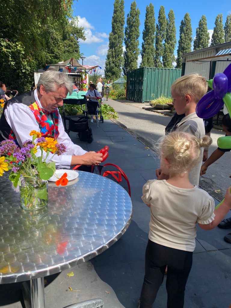 Buurtgenoten, vrienden en familieleden kwamen massaal de sfeer opsnuiven en rondstruinen op de goedgevulde oogstmarkt. Met name rond lunchtijd was het druk en vlogen de broodjes worst, shoarma, loempiaās en andere lekkernijen om de oren. Ook de jongste gasten hadden niets te klagen: Professor Roodsnavel wist de befaamde ‘kantine zaal’ driemaal vol te spelen.