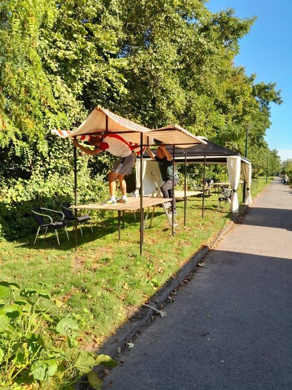 Het was gezellig druk op de open dag van 30 augustus. Wegens de verwachte regen was het nog even spannend of het zou doorgaan. Gelukkig werd de knoop doorgehakt om toch op te bouwen, want het bleek een stralende dag te worden.