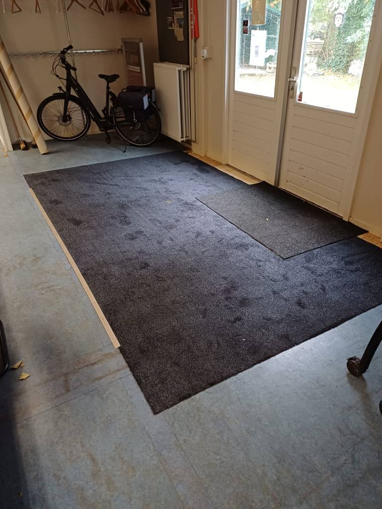 In de kantine is bij de voordeur een versteviging aangebracht, deze is netjes afgedekt door een nieuwe inloop mat.